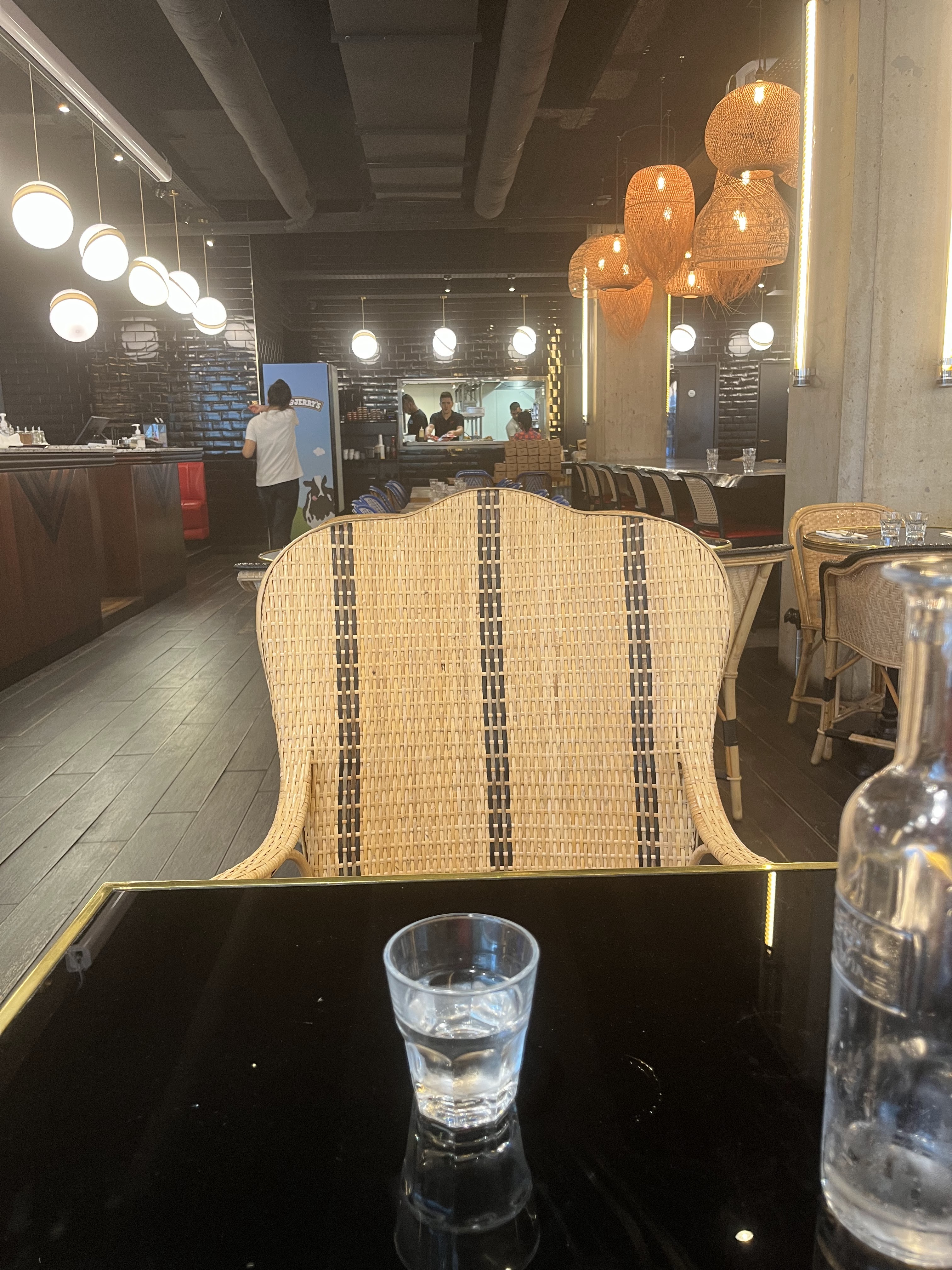 Le personnel est rapide, aimable et sympathique. La salle est grande et confortable, et beaucoup de tables disposent de banquette et sont assez éloignées les unes des autres. Les plats sont bons. Bémol : les options végétariennes existent, mais il y a peu de choix et les plats ne sont pas très nourrissants.