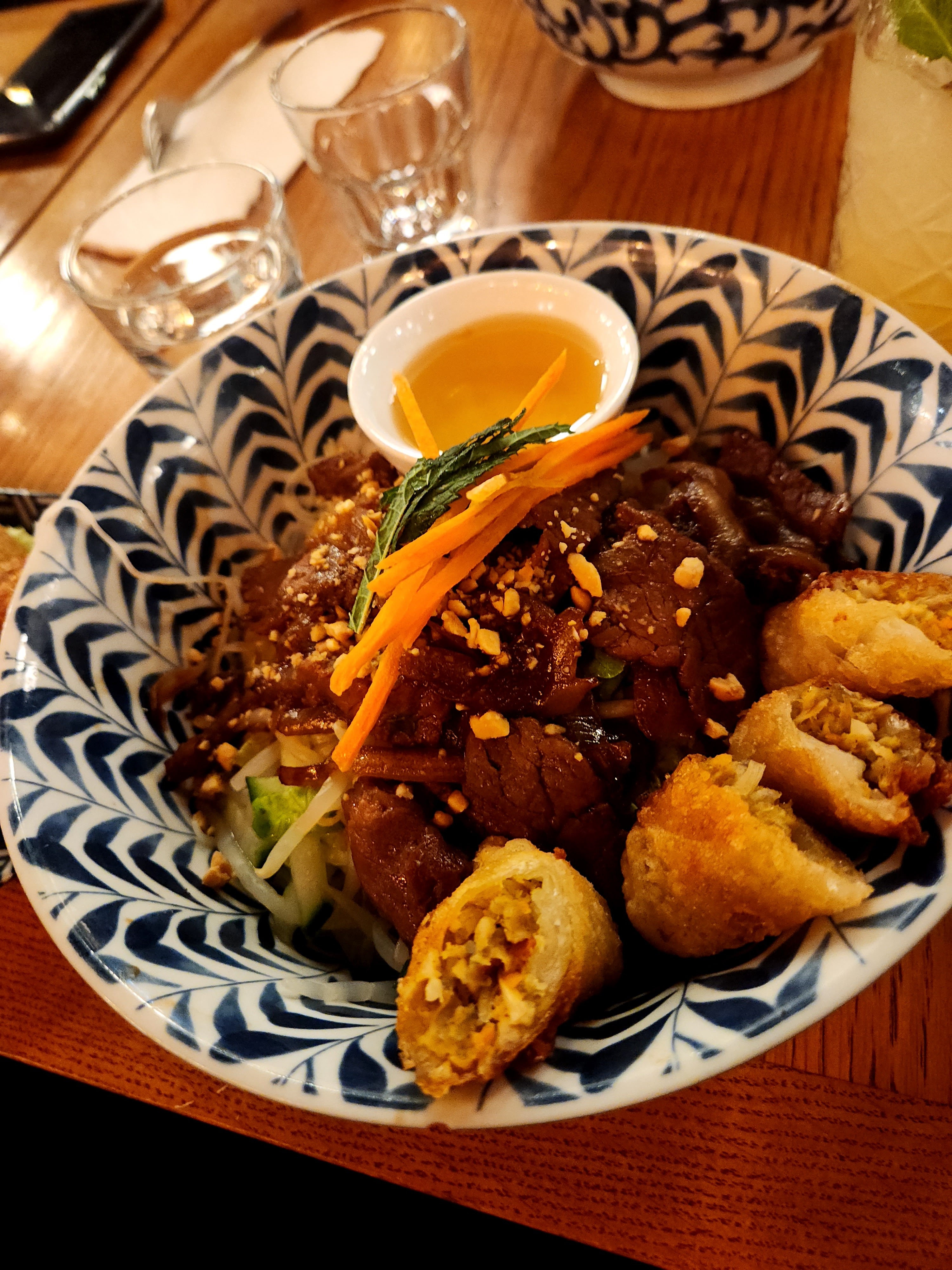 Service pro, rapide et efficace pour le midi. Menu à ~15 ou ~19 euros au déjeuner. Les entrées sont bonnes. Bobun classique et améliorable (qualité de la viande, des vermicelles de riz...). Manque de saveur et d'épices.