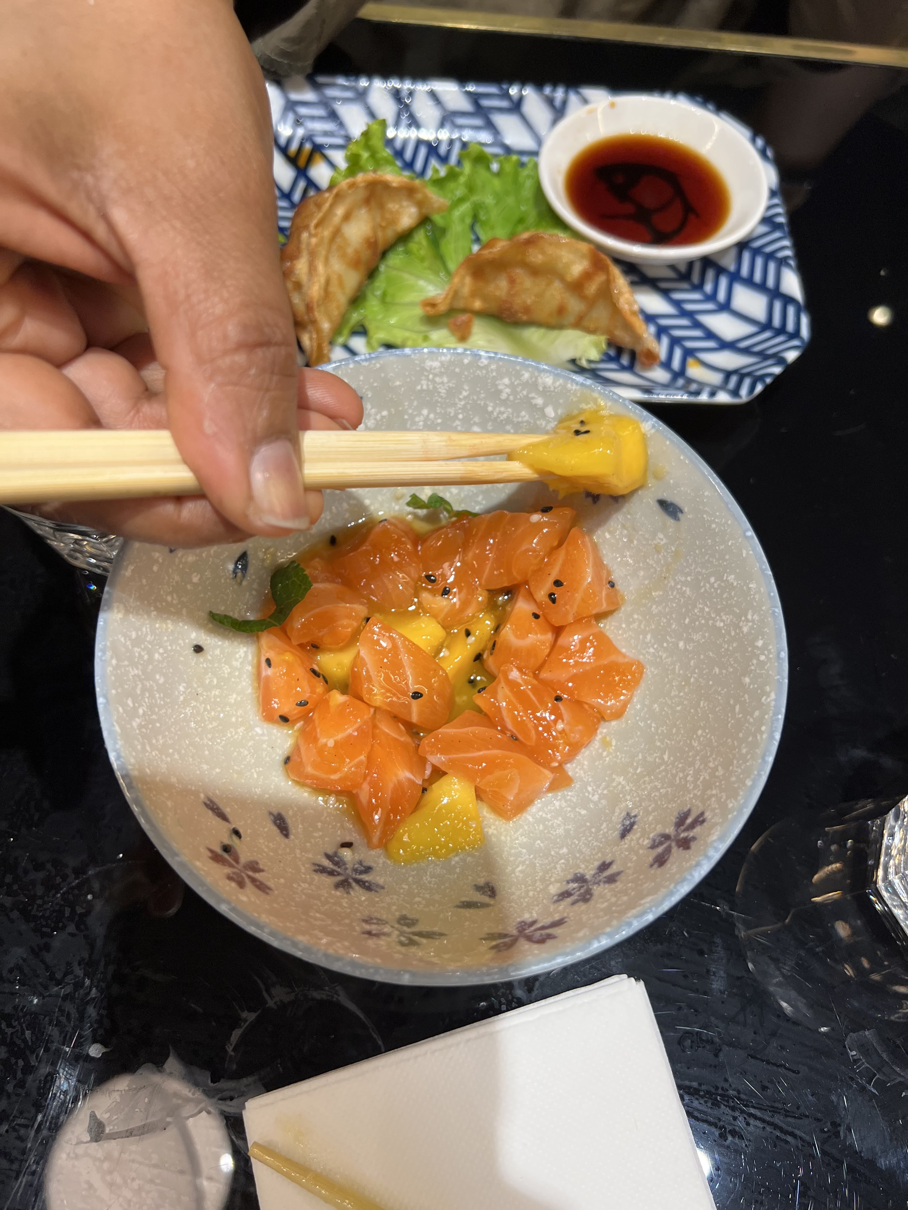 Cuisine Asian fusion / service impeccable & nous nous sommes régalés avec des gyoza, un wok végétarien et un poki délicieux