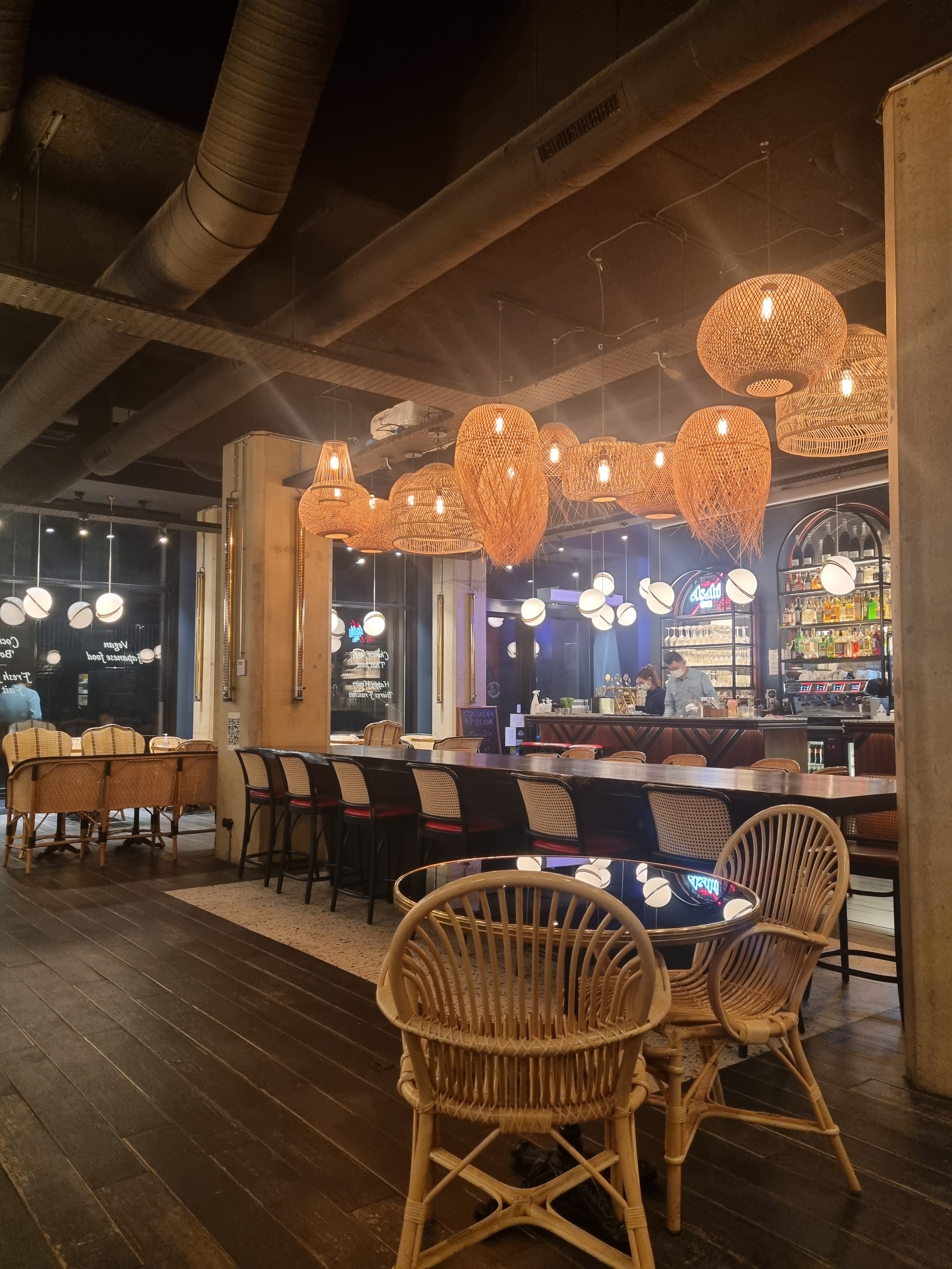 Très bonne expérience dans ce restaurant qui viens d'ouvrir juste à côté du cinéma des Batignolle : L'ambiance est assez unique il y a une grande fresque sur le mur principal, l'œuvre d'art à l'entrée est géniale aussi. La nourriture est très bonne, il y a une option végétarien. Et le Bo Bun est très bon ! Le service etait très agréable. Conclusion--> Très bien !