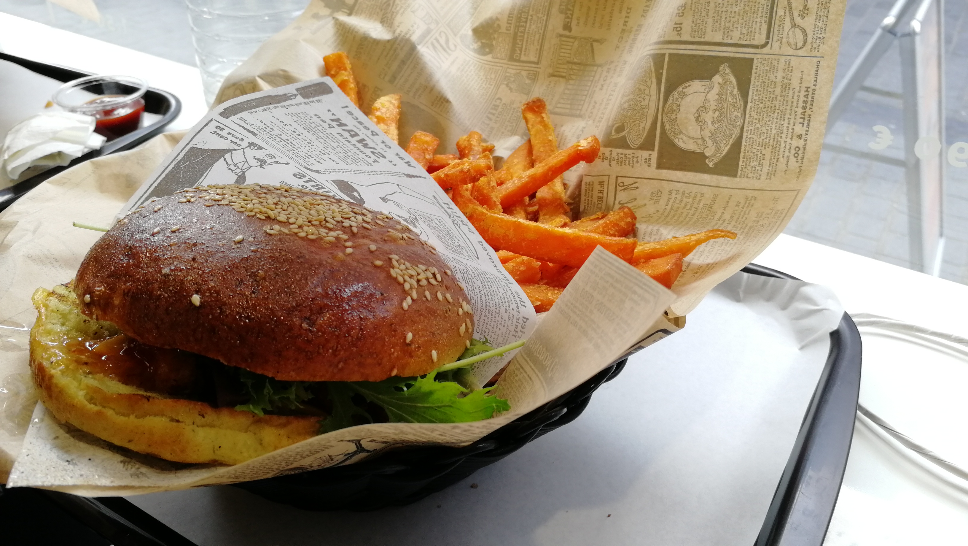 Original et bon . Les frites de patate douce sont super bonne et unique (à ma connaissance) sur Arras