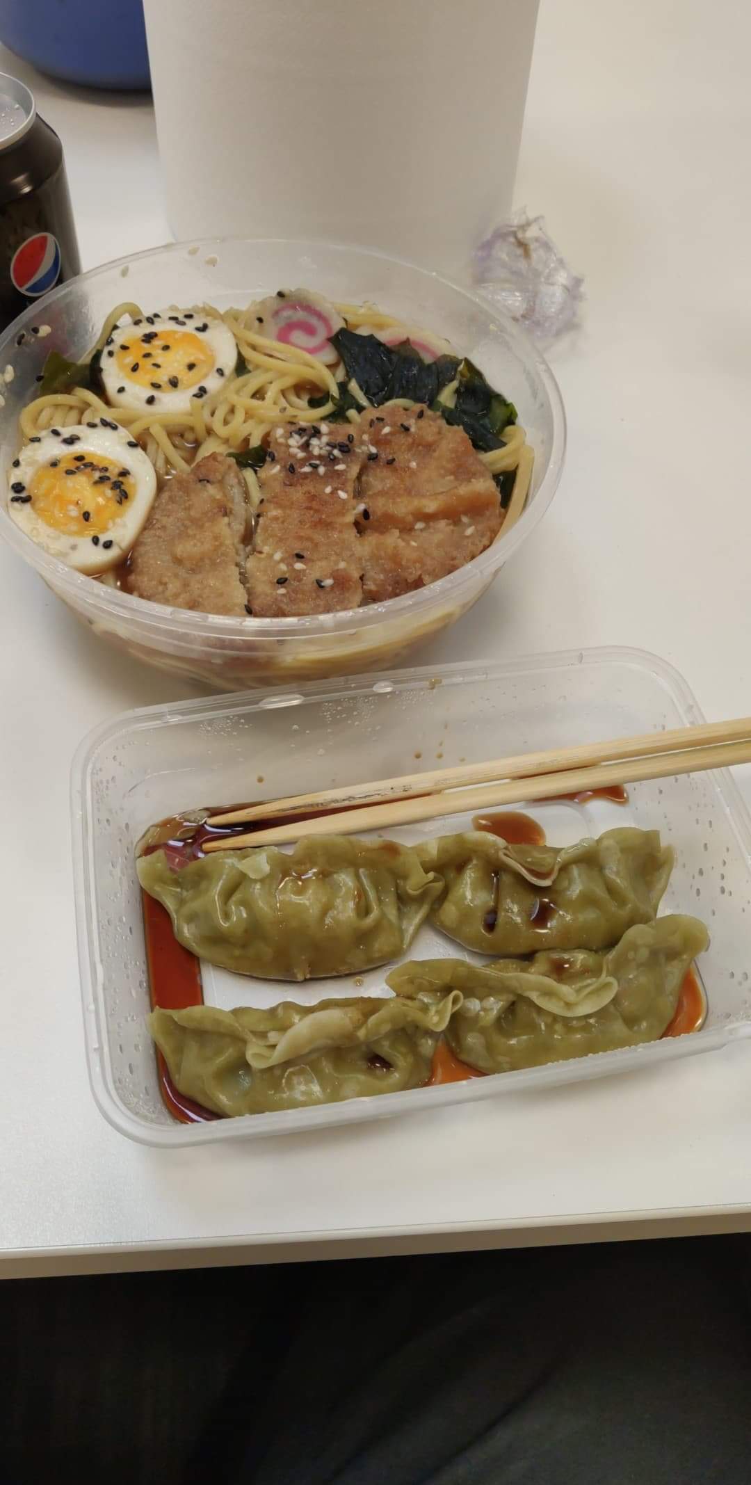 Du monde aujourd'hui en ce jour du matsuri ! Nous avons commandé des gyozas, des nems, des nouilles sautées au poulet et un risotto thaï à emporter. Tout est bien chaud et bien empaqueter et très très bon ! Nous reviendrons !! 🙏