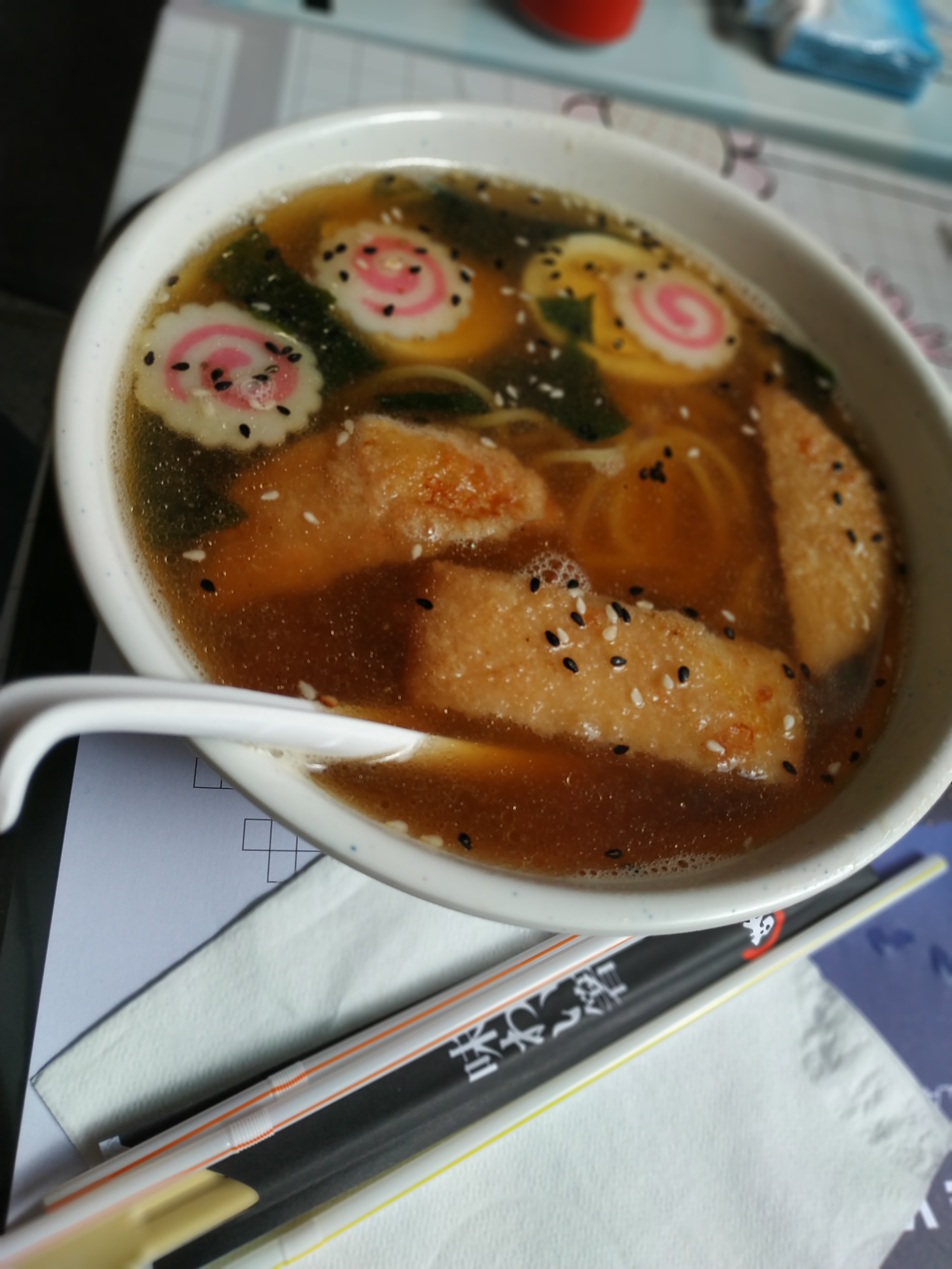 Le rapport qualité prix est plutôt correct, j'ai pris des nouilles ramen au porc et la viande était délicieuse ! Le personnel est plutôt agréable, je suis satisfaite de ma venue. Seul bémol, l'endroit est assez petit (6 places assises) et le sol est abimé : un carton recouvre une partie du sol, ce qui est gênant pour déplacer les chaises.