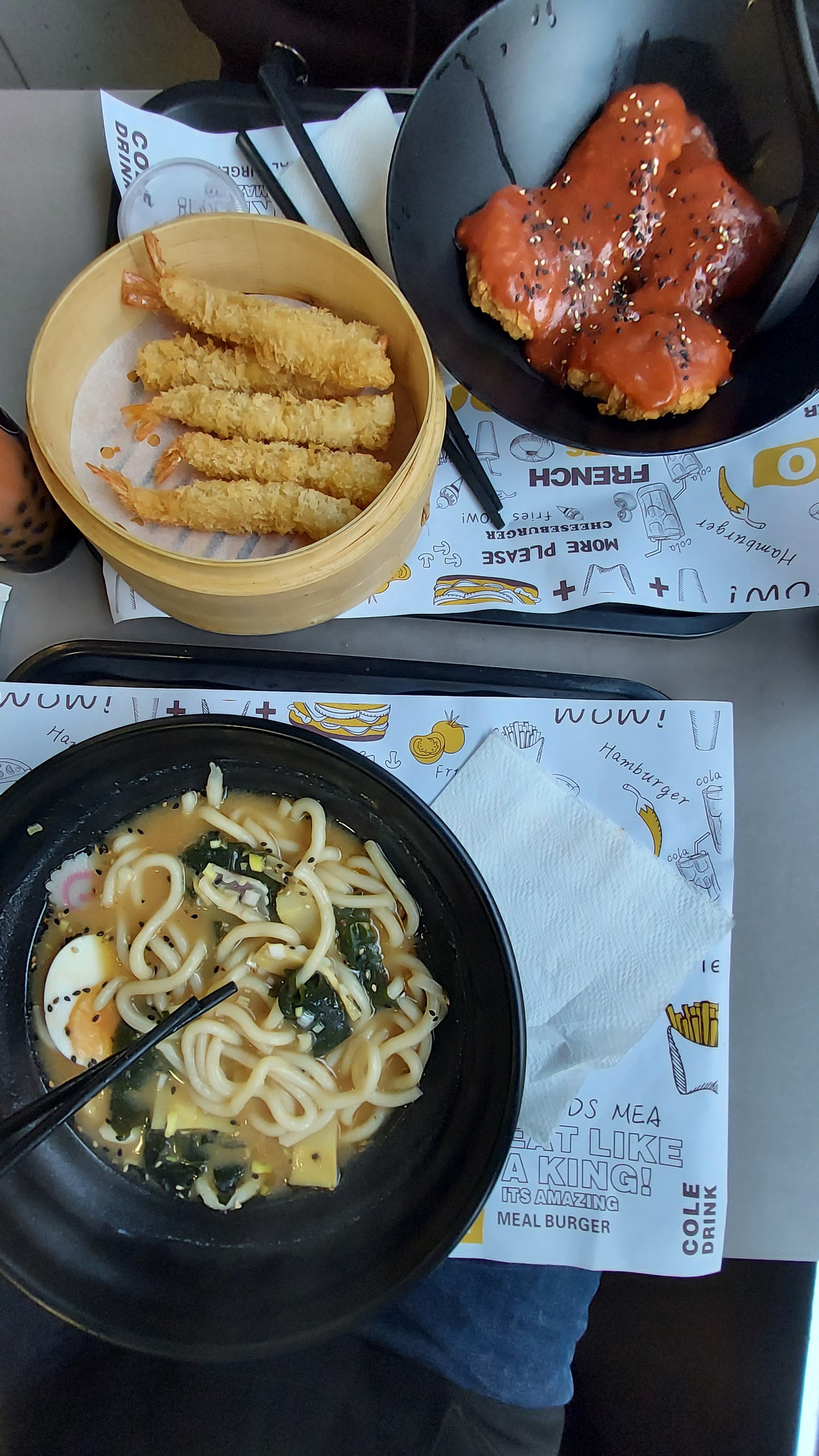 Super burger tempura aux crevettes! La soupe ramen est tres bon aussi·